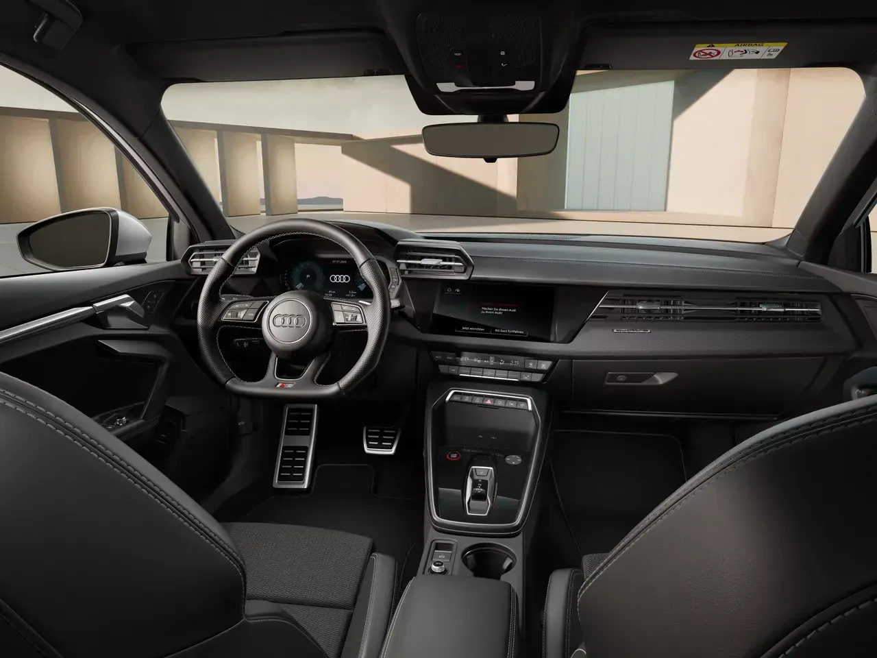 Sportovní sedadla vpředu kombinace látka/koženka s reliéfem S