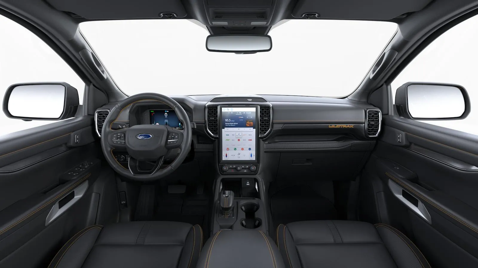 Prošívání v oranžová Cyber a nápisem WILDTRAK/WILDTRAK X na opěradle předních sedadel (pro Wildtrak a Wildtrak X)