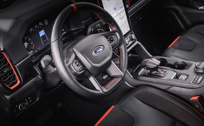 Prošívání v oranžová Cyber a nápisem WILDTRAK/WILDTRAK X na opěradle předních sedadel (pro Wildtrak a Wildtrak X)
