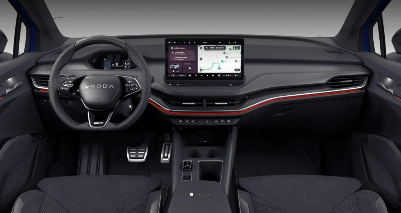 Škoda Enyaq ve zbrusu novém kabátu. Sportovní vzhled s prémiovým interiérem Sportline. Dojezd až 565 km WLTP – ideální pro každodenní i delší trasy. Svižná dynamika při zachování efektivity. Individuální konfiguraci Vám rádi napočítáme.