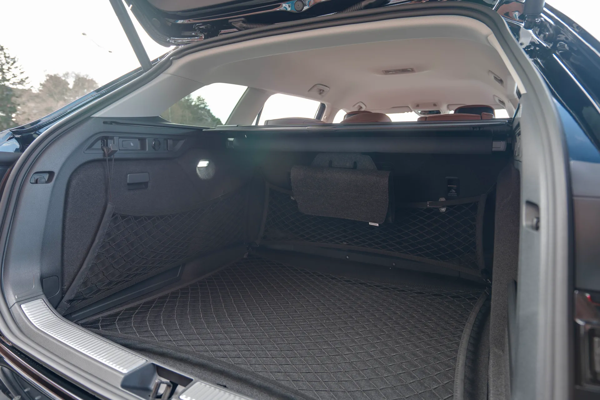 Odkládací schránka v zavazadlovém prostoru s víkem v bočním obložení